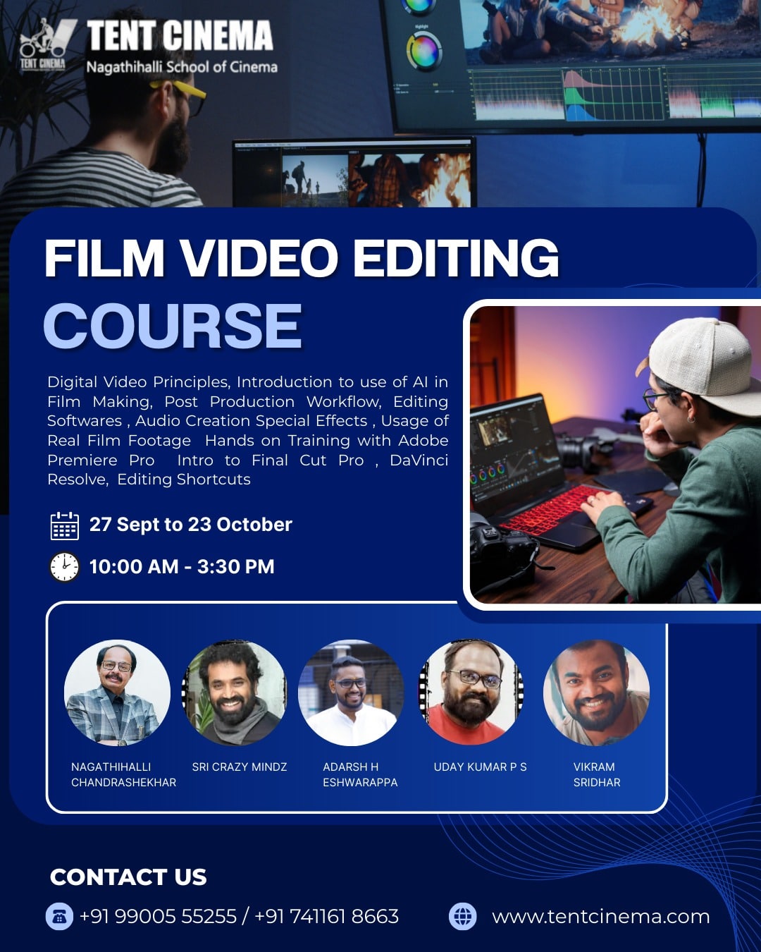 Explore DetailsTent Cinema Film School is located in Bangalore. It is yet another successful initiative of renowned writer and filmmaker Dr. Nagathihalli Chandrashekhar to introduce fresh artists and technicians into the industry.