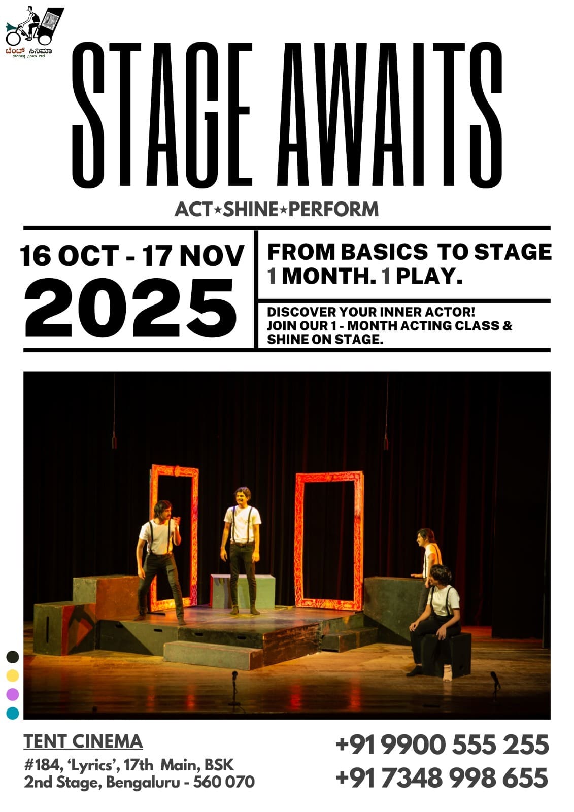Founded in 2012, Tent Cinema is one of the best acting schools in Bangalore. It is another successful initiative from writer and filmmaker Dr. Nagathihalli Chandrashekhar’s continued efforts to introduce fresh artists and technicians into the industry. The school offers acting courses for adults and children as well as workshops in Scriptwriting, Filmmaking, Editing and Cinematography.